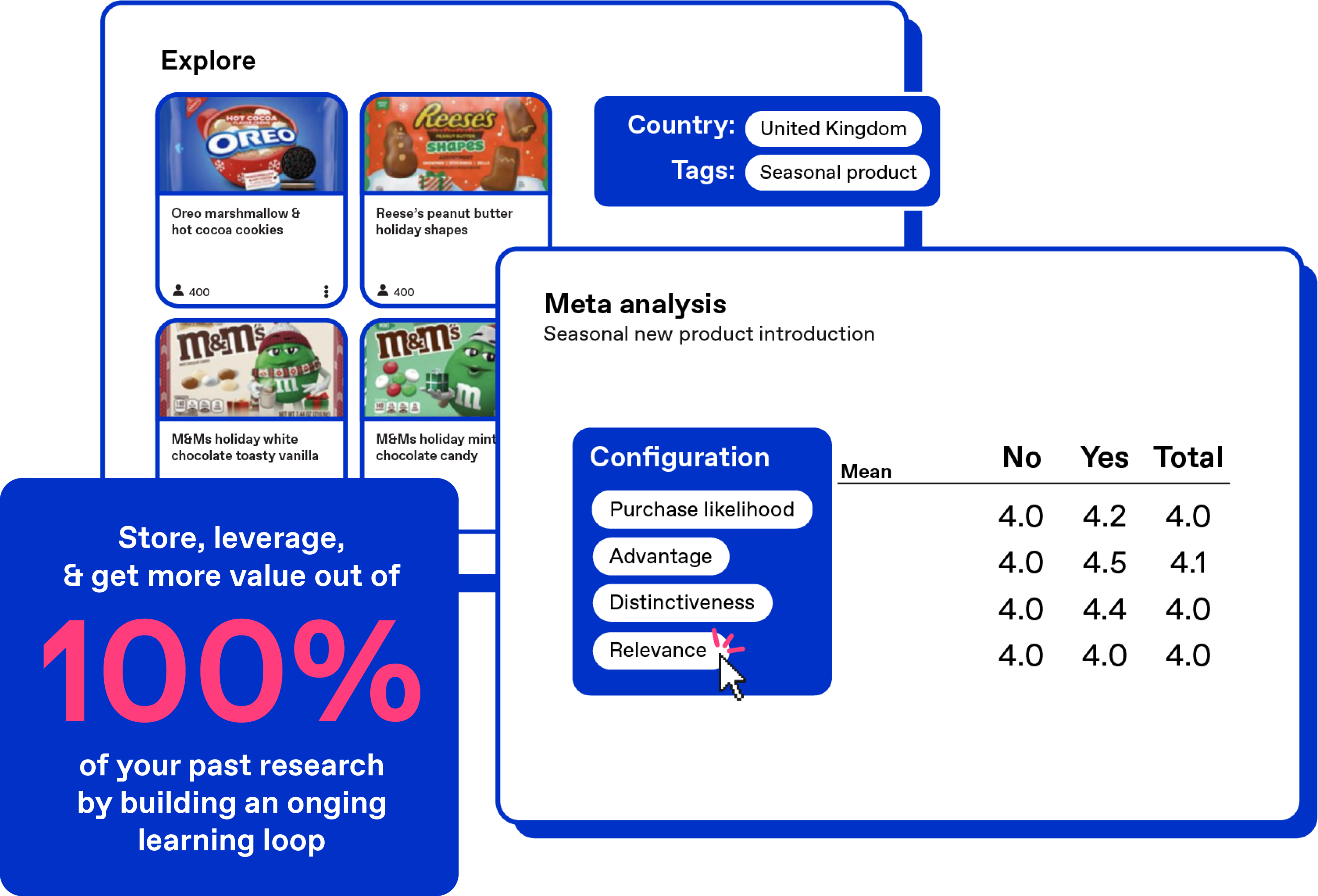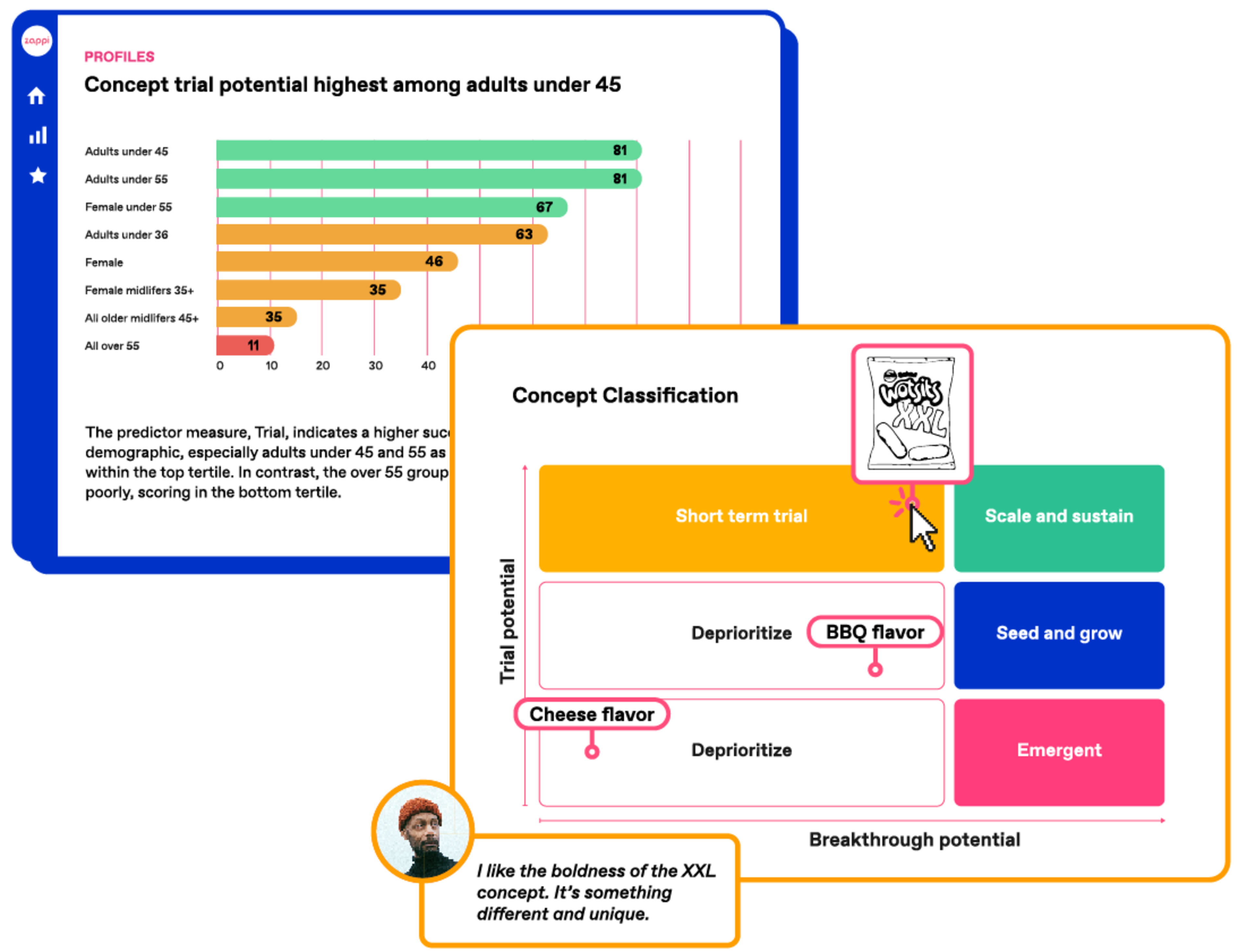 Best-in-class tools to test key drivers of success and bring consumer insight into every phase of product development. Learn and iterate quickly and continuously, course-correct early, and bring new products to market with confidence.