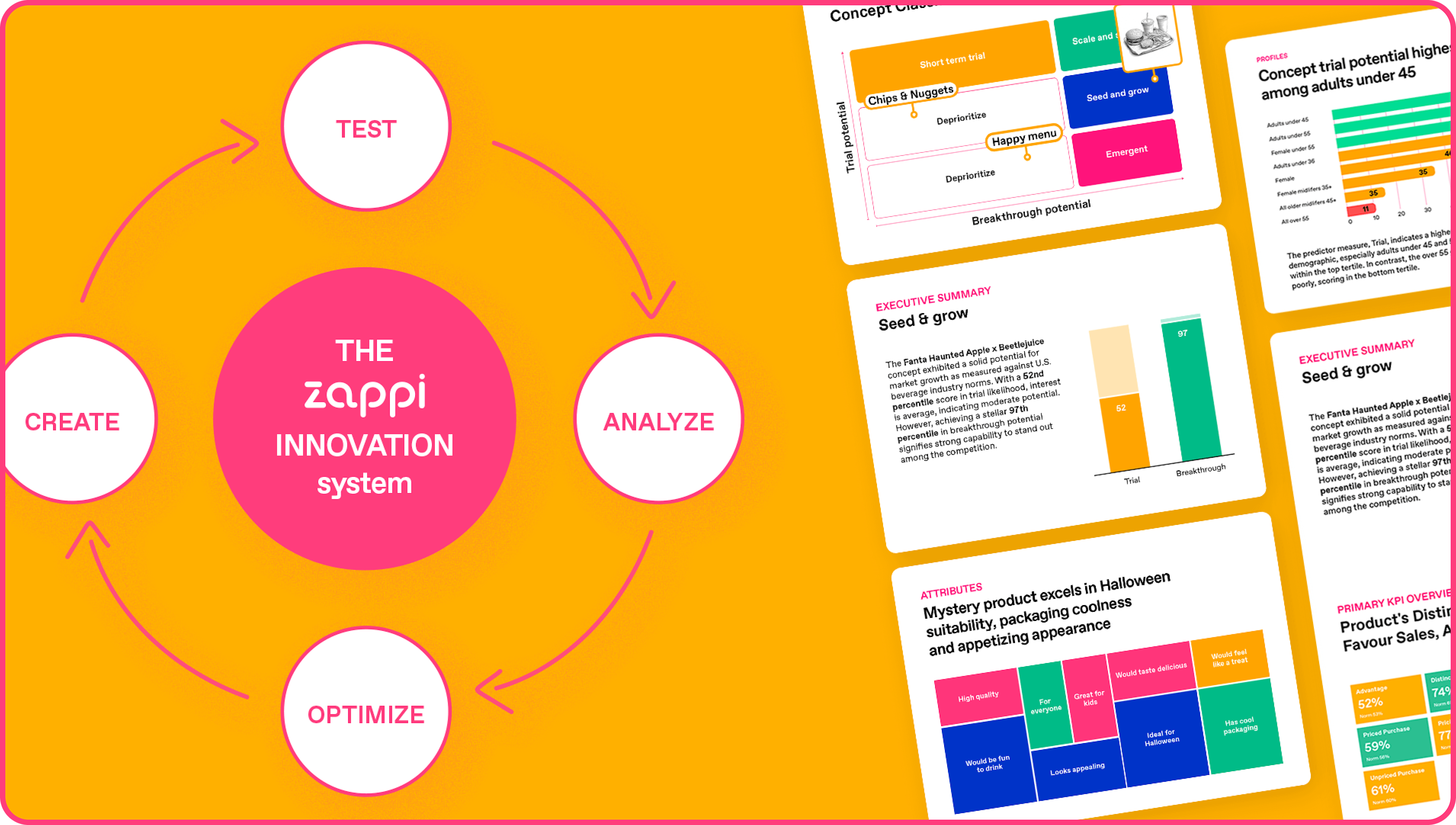 Traditional research models, with their rigid and linear processes, leave teams playing catch-up. Zappi's Innovation System offers a new model. Get continuous consumer feedback across the entire development lifecycle and accelerate work at every phase to move fast, stay connected to the consumer and learn as you go!